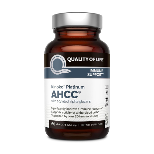 Quality of Life Premium Kinoko Platinum AHCC Herbal Supplement, 750mg per Capsule, for Immune Support, Liver Function, Maintains Natural Killer Cell Activity, Pack of 1, 60 Veggie Capsules